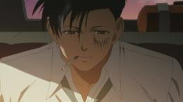 형식상 체포되어 끌려가는 경찰차 안에서 서로 담배불을 주고 받는 장면...