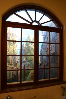 화장실 변기 앞에도 저런 이쁜 그림을 붙여 놓았다.