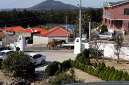 트럭 뒤에 말을 묶고 상당히 천천히 지나가는 광경을 목격했다.